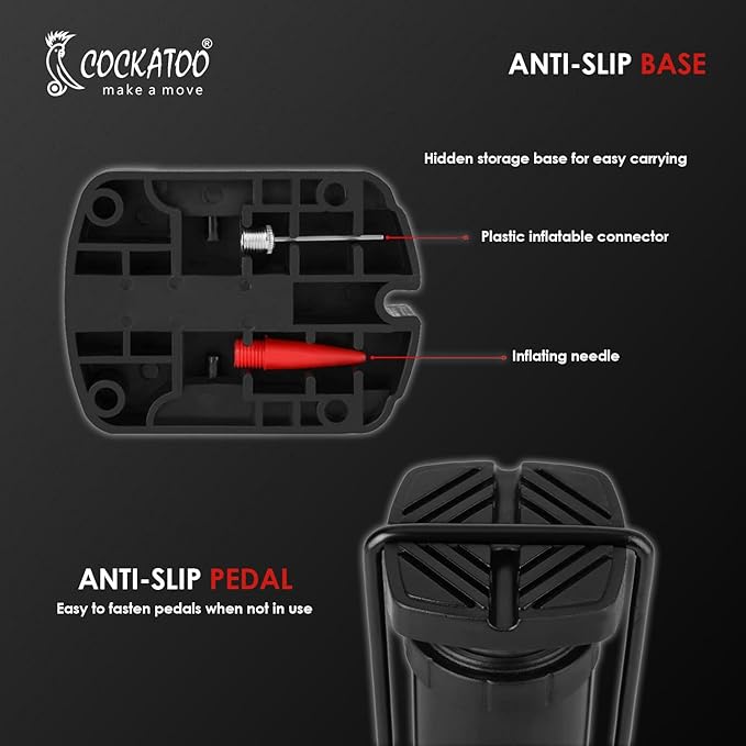 The bicycle foot pump has perfect design which makes it easy to use, durable and handy too. Prioritizing durability and stability with its non-slip pedal and non-slip base our vision is to endure consistent use, its robust design and frame withstands pressure effortlessly. SThis advanced bicycle pump, equipped with an air nozzle and needle, remains a steadfast companion can also be used as ir pump for ball, air pump for inflating swimming tub for kids, gym ball etc. Built to last, it guarantees reliability for years ahead.